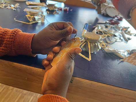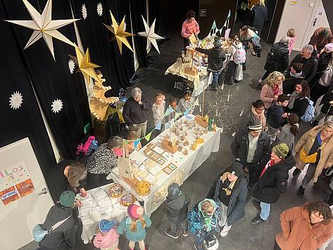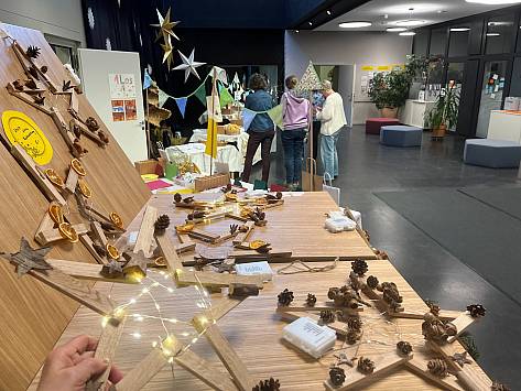 Wenn es in der Primarschule Lindenfeld nach Suppe, Popcorn und Glühmost duftet, vor dem auf dem Areal unzählige Kerzen und zwei Feuer brennen und sich eine lange Schlange vor dem Waffelstand bildet, dann ist Novembermarkt. Auch drinnen drängeln sich grosse und kleine Menschen. Sie bestaunen die vielen Sachen, die in den vergangenen Wochen und Tagen entstanden und nun zum Verkauf angeboten werden. Schnell wechseln von der Abwaschbürste,getrockneten Apfelschnitzen, Getöpfertem, Handtüchern, Kerzen, Kränzen, Weihnachtskugeln, bis zum Zitronenthymiansalz schier unzählige Kostbarkeiten die Besitzer*innen. „Eh, jetzt habe ich gerade die Geschenke für meine Schwestern“, ist eine Besucherin glücklich. Ein Vater freut sich, dass er bei seinem Sohn den Hauptgewinn der Lotterie gewonnen hat und auch das Zwirbelrad steht selten still.