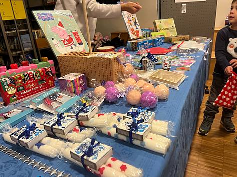 Während einer grossen Pause haben sich Kinder der 4.-6. Klasse versammelt und all ihre Gegenstände auf einem Tuch ausgelegt. Dank eines Startguthabens von 5 Chipslis (Biella-Kartonrondellen), konnten alle die mitgebrachten und nicht mehr gebrauchten Gegenstände gegen Chipslis eintauschen. Der Tausch war ein voller Erfolg - so wechselten Spiele, Bastelmaterial, Bücher, Comics und Gegenstände die Besitzenden. Viele Kinder dachten so kurz vor Weihnachten auch an ihre Geschwister und tauschten ein paar Weihnachtsgeschenke ein. Mit glücklichen Gesichtern und vielen gefüllten Taschen mit neuen Gegenständen bauten die Kinder nach einer Pausenlänge ihren Stand ab.