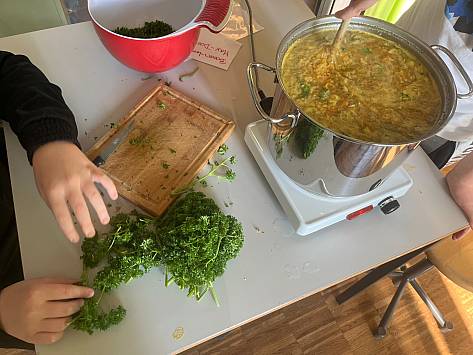 Die Vorführungen des Theaters generierten Einnahmen und diese wollten wir als Klasse nützen, um gemeinsam eine Aktivität durchzuführen. Wir entschieden uns fürs gemeinsame Kochen und Essen.