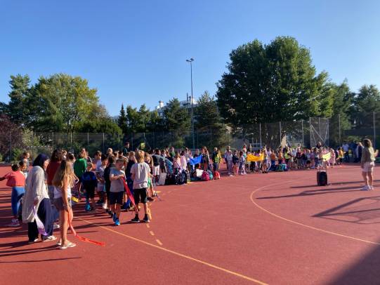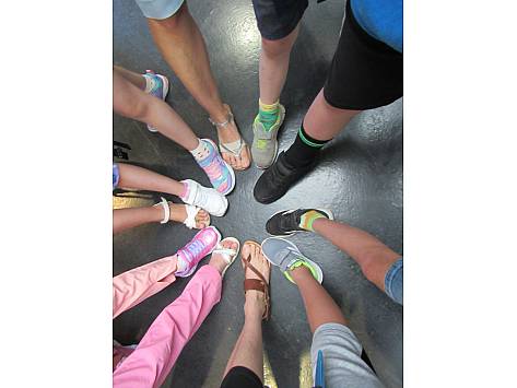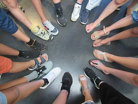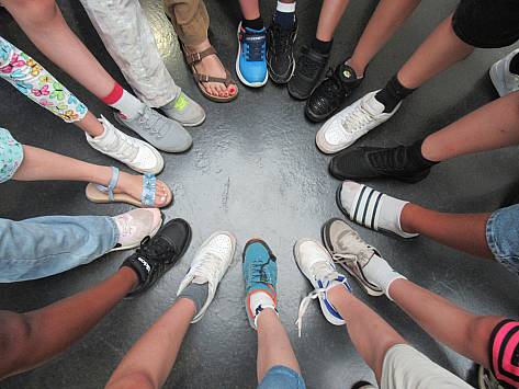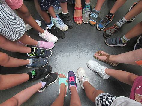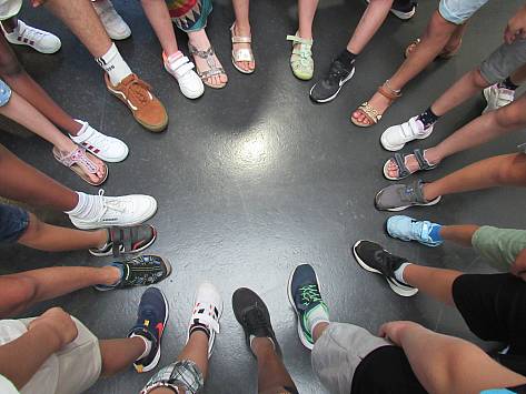 Gemeinsam starteten heute die Schulklassen vom Lindenfeld ins neue Schuljahr. Die Erstklässler*innen wurden hinter dem farbigen Bogen von ihren zukünftigen Klassen herzlich begrüsst und durch die Schulleiterin willkommen geheissen. Beim Tanz zum Song «The feeling goes on» durften dann alle mitmachen und als Klasse ihre erste Performance hinlegen. Unser Jahresmotto heisst «zäme ungerwägs fägts» - und um zusammen unterwegs zu sein brauchen wir das richtige Schuhwerk. So begleitete uns das Thema Schuhe dann durch den Morgen und es sind lustige Schuh-Klassenfotos entstanden. Welche Klasse steckt wohl hinter welchem Foto? Viel Spass beim Knobeln!