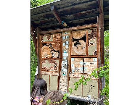 Nebst den vielen Arbeiten wurde das neue Insektenhotel, an welchem im letzten Schuljahr gearbeitet wurde, an seinem neuen Standort eingepflockt und eingeweiht.
