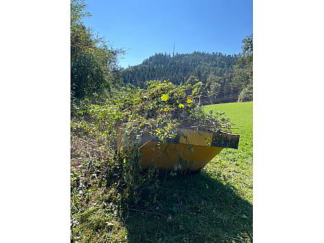 Wir (Klasse L5) haben im Chüeweidgrüebli einen Natureinsatz gemacht. Das bedeutet, wir haben Unkraut entfernt und es den Tieren leichter gemacht, einen Unterschlupf zu suchen, aber auch, dass die Sonne die Grube mehr erwärmen kann für den Lebensraum der Tiere. Wir haben eine ganze Mulde mit Unkraut gefüllt. Wir waren einen Morgen dort und haben vielleicht einmal knapp die Hälfte erreicht. Deshalb mussten die Erwachsenen noch ein wenig nachhelfen. Es war anstrengend aber es war trotzdem ein mega toller Morgen. Wir haben auch ganz kleine Bäumchen entfernt, die zum Teil eine riesige Wurzel hatten. Wir haben mega viele Tiere gesehen wie zum Beispiel Schnecken, Spinnen, Libellen, Rückenschwimmer, Regenwürmer und Blindschleichen.