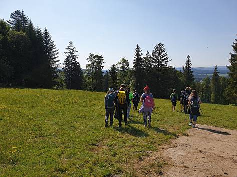 Mittwochs waren wir am Windenergiepark beim Mont-Soleil und wir waren in einem Windrad. Dann machten wir eine grosse Wanderung zu der Schokoladenfabrik Camille-Bloch und danach gingen wir mit dem Zug zurück nach Saignelégier. Am Donnerstag gingen wir zu der Stiftung für das Pferd. Das ist eine Stiftung für alte Pferde, damit sie ihren Lebensabend noch in Ruhe geniessen können. Danach wanderten wir eine halbe Ewigkeit zum Moorsee Etang de la Gruère, wo wir dann einen Auftrag hatten und um den See gingen. Als dann Freitag war, sind wir nach mit dem Zug nach Les Bois gereist und natürlich gewandert. Dort gingen wir zu einer Husky -Farm. Die Besitzerin hat 40 Huskys. Der größte davon heißt "Heaven". Die kleinste Hündin hiess Nevada. Wir gingen mit den Huskys wandern. Danach durften wir noch ein "Bad in der Meute" machen. Meine Güte,hatten diese Huskys viele Zecken! Danach gingen wir leider wieder nach Hause.