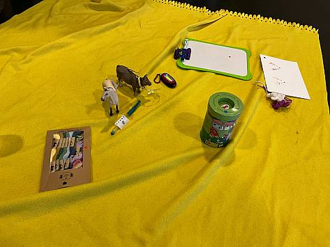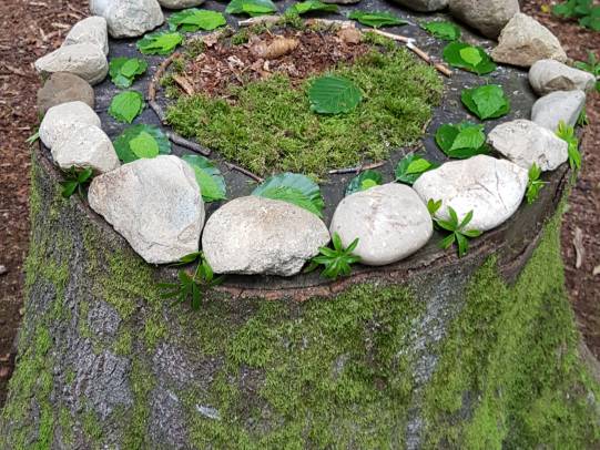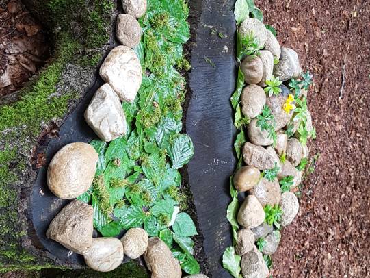 Alle Kinder sammelten unterwegs einen oder mehrere Gegenstände und legten diese zu einem Gemeinschaftsbild.