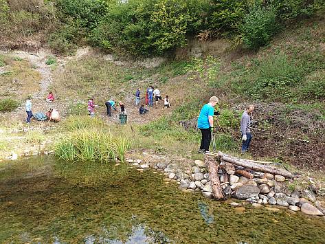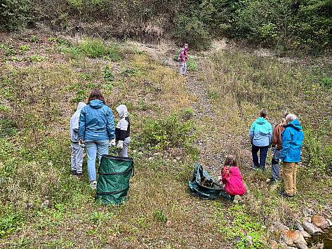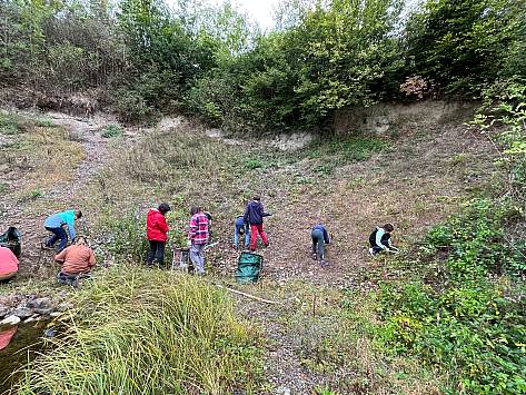 Unter der Leitung der Biologin Christine Müller erhielt die Klasse den Auftrag, das Chüeweidgrüebli von Unkraut zu befreien. Dies, damit die Kiesgrube wieder mehr Wärme speichern kann, was für das Überleben von unzähligen Kleilebewesen und Insekten rund ums Biotop wichtig ist. Einen Morgen lang schuftete die Klasse unermüdlich und das gemeinsam definierte Ziel, eine gelbe Tonne zu füllen, wurde super erfüllt. Es war anstrengend, schweisstreibend, aber ein unglaublich tolles Erlebnis! Der gemeinsame Zusammenhalt, das einander Helfen und das gegenseitige Motivieren war grossartig! Nebenbei wurden viele Tiere entdeckt: Bergmolch, Libellen, Frösche und Kröten, Heuschrecken, Spinnen, Käfer und und und…