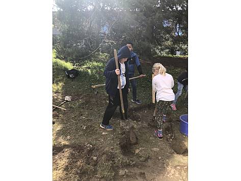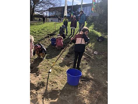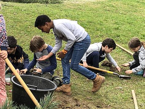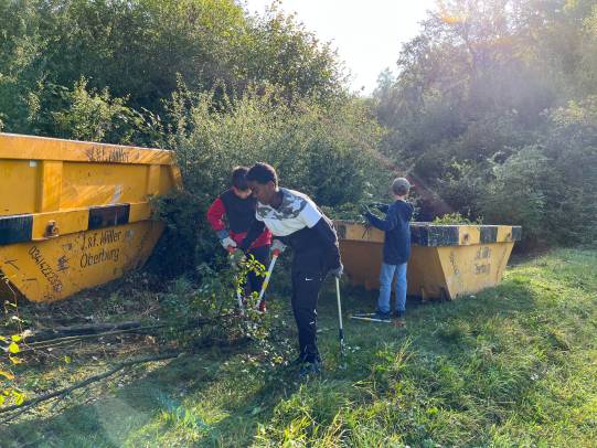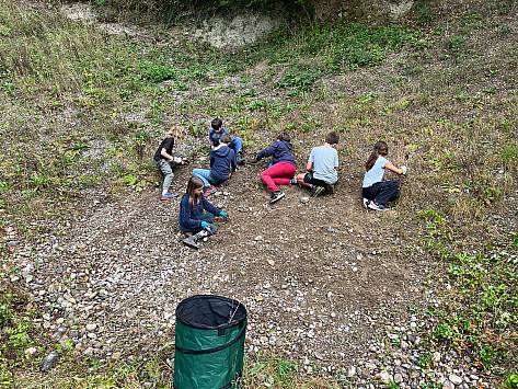 Einen ganzen Morgen lang half eine Mittelstufenklasse, den Tieren wieder einen besseren und für sie helleren und somit wärmeren Lebensraum zu gestalten. Da wurden Pflanzen ausgerissen, Hecken geschnitten, Pflanzen samt Wurzel entfernt. Dabei kam das Lernen von neuen Pflanzen, das Staunen von Pflanzen und ihren unglaublichen Fähigkeiten oder das Beobachten der Tiere nicht zu kurz.
