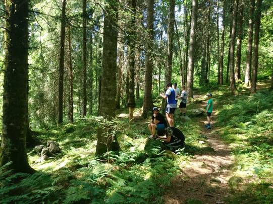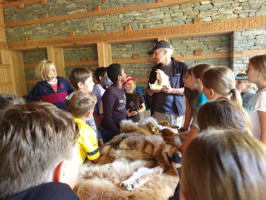 Wir hatten das Glück, die Bären und Wölfe sehr gut zu sehen und ihnen zuzusehen. Denn auch über die drei Grossraubtiere Bär, Wolf und Luchs erhielten wir viele Informationen. Dabei durften wir sogar je ein Fell berühren und begutachten.