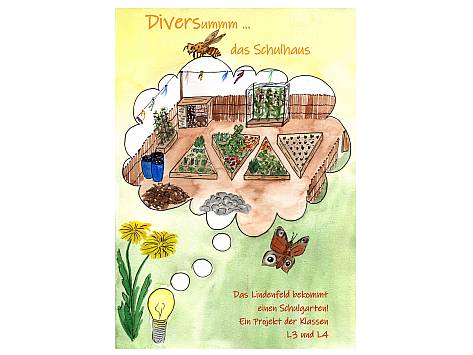 Unter dem Titel „Diversummm... das Schulhaus“ wagten sich die Klassen L3 und L4 an ein grösseres Projekt; die Gestaltung eines Gartens. Es sollten erhöhte Beete zum Anpflanzen und Asthaufen entstehen, Steinhügel und Insektenhotels für diverse Nützlinge.