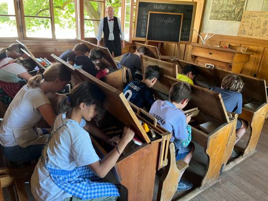 Am dritten Tag ging es am Morgen in die Kletterhalle. Mit super Begleitung schafften es alle zu Bouldern und sogar eine senkrechte Wand mit Seilen hochzuklettern. Jedes Kind schaffte es über seine bisherigen Grenzen hinaus und erreichte Unglaubliches! Am Nachmittag besuchten wir das Schulmuseum Bern und durften eine historische Lektion miterleben, wie es etwa vor 100 Jahren hätte aussehen können.