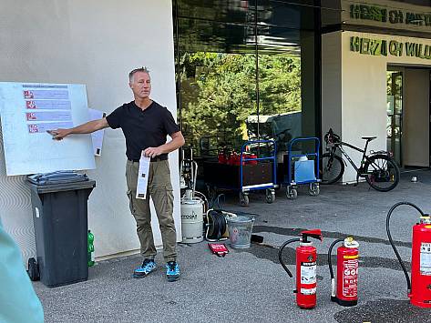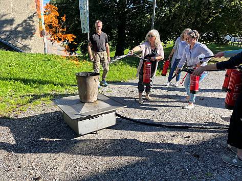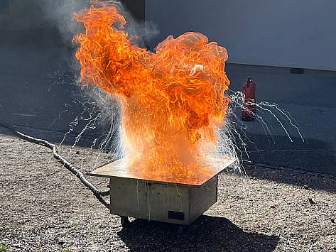 Der Fachverantwortliche Brandschutz Feuerwehr von der Stadt Burgdorf erklärte unter anderem, was es braucht, damit ein Brand entstehen und zu einem zerstörenden Feuer werden kann. Roger Hess erklärte weiter die Unterschiede der verschiedenen Brandklassen, die passenden Löschmittel sowie deren Handhabung vor, während und nach einem Brand. Die Lehrpersonen lernten unter vielem anderen, dass auch ein Kessel mit Wasser und ein „Bäseli“ eine Eskalation verhindern kann.