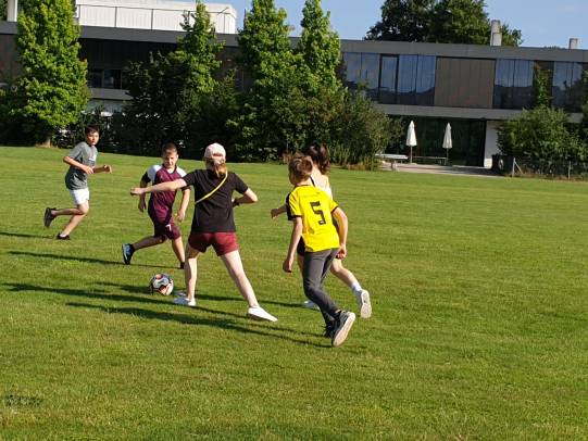 Der sonnige Morgen lockte nach draussen. Der Bundesrat mit seine Schüler*innenvertretung hatte einen Fussballmorgen geplant. Nach einer Qualifikationsrunde mit klassengemischten Gruppen wurde nach der Pause im A Final und B Finale um die ersten zwei Plätze gekämpft, welche zum Schluss noch ein Finalspiel hatten. Es brauchte keine Schiris für die siebenminütigen Spiele - die Schüler*innen schafften es problemlos, sich an die Regeln zu halten und Fairplay war nebst der Freude das oberste Ziel.