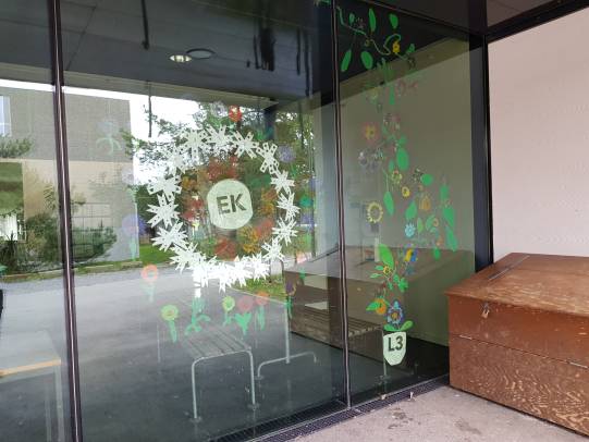 Die Kindergarten- und Schulkinder gestalteten die Fenster passend zum Schuljahresmotto «Wachsen und Gedeihen».