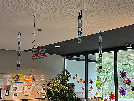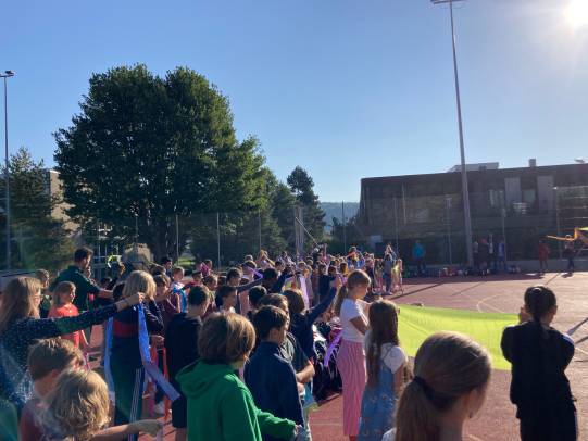 In den einzelnen Klassen wurde nach dem gemeinsamen Start Kresse angesät. Diese Aktion passt zum diesjährigen Schuljahresmotto «Wachsen und Gedeihen ». Am Mittag flatterten auf dem ganzen Schulhausareal bunte Bänder.