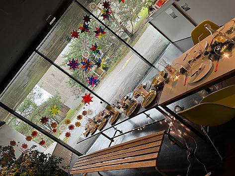 Anschliessend wurde über zwei Stunden fröhlich und mit viel Elan gearbeitet: Da entstand eine tolle Tischdekoration, leckere Apérohäppchen, ein köstliches Mittagessen, ein süsses Dessert und für ein Adventsritual ein paar feine Cookies.