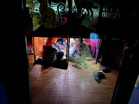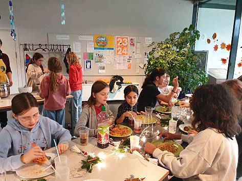 Nicht zuletzt haben die Mittelstufenkinder beim gemeinsamen Kochen und den Ämtli gelernt, wie man eine perfekte Omelette hinbekommt, Herdprobleme löst oder dass man eben seine Socken nach dem Duschen wieder mitnehmen sollte, damit es nicht die Ämtligruppe stört.
