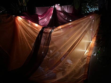 Für den 2. Teil wurden wie immer Höhlen mit Lichterketten ausgestattet und die Kinder durften es sich zum Lesen, Vorlesen oder Vorstellen von Büchern darin gemütlich machen. Das Ganglicht wurde dazu ganz ausgeschaltet, so dass ein Gefühl von Geborgenheit entstehen konnte.
