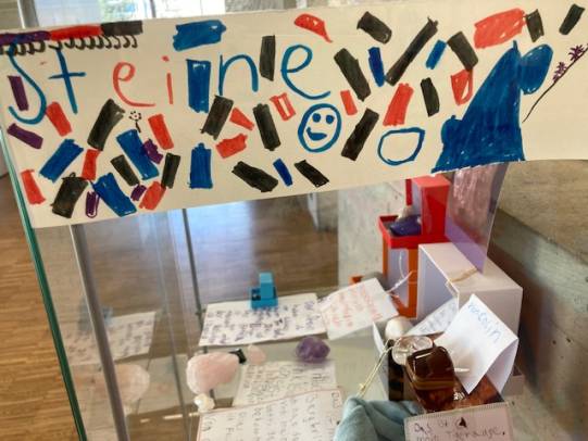 Im Unterricht haben wir dann aus unseren persönlichen Schätzen auch ein Museum mit den Wunderkammern (=Sammlungen) zum Thema Steine, Naturmaterialien und Krimskrams erstellt.