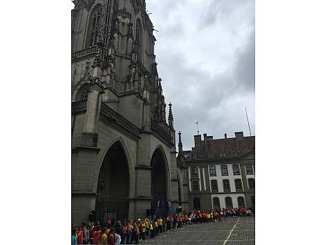 Die Klassen der Unterstufe Lindenfeld (L1, L2, L3, EK) und das Angebot der Schule «Kreativer Kindertanz» besuchten im Mai das Tanzfest in Bern. Dabei haben 1000 Kinder zusammen auf dem Münsterplatz getanzt. Ein eindrückliches Erlebnis!
