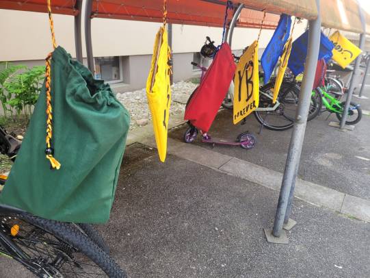 Für das Fest zur Einweihung der Spiele am kommenden Freitag, 17. Mai, ab 17 Uhr flattern die Fahnen vor dem Schulhaus in neuen leuchtenden Farben.