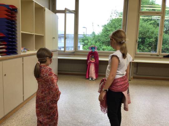 Am Donnerstag endete die Projektwoche mit einem fröhlichen Schul- und Einweihungsfest. Die Piraten der Tanzgruppe haben symbolisch das neue Schulgebäude erobert. Die Schule verwandelte sich in einen bunten Markt mit Verkaufsständen, Ausstellungen und Darbietungen. Stolz präsentierten die Kinder ihre Produkte und Darbietungen den zahlreich erschienenen Familien, Verwandten und Gästen. In den Räumen der neuen Tagesschule wurde Kaffee und Kuchen serviert.