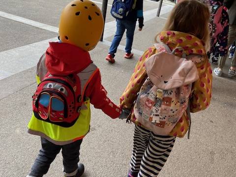 Jeweils vier Klassen verbrachten diesen Morgen gemeinsam. Dabei sollen bereits geknüpfte Freundschaften gepflegt und neue Freundschaften geschlossen werden. Das Bilderbuch „Die Kinderbrücke“ führte uns hin zum Thema Brücken bauen zueinander. Dieses Thema begleitete uns durch den Morgen, Bauklötze, Lego und Strassenkreiden wurden zu leuchtenden Brücken der Begegnung.