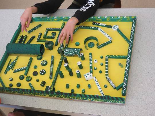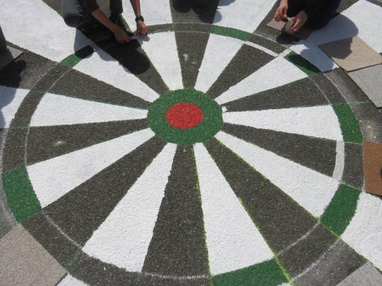 Eine grosse Schweizerkarte wurde aufgemalt, Spielmöglichkeiten dazu wurden kreiert. In Zukunft kann Mühle, Dart, Twister, Tic tac toe und Himmel und Hölle gespielt werden. Auch Vier gewinnt, Memory und Mikado gibt es in XXL-Ausführung. Das grosse Kugellabyrinth fordert die Kooperationsbereitschaft heraus. Aus Steinen und Holunderholz wurden Spiele kreiert und es sind klingende Werke entstanden. Ein Spielhaus wurde aufgebaut, damit die Spielsachen versorgt werden können.
