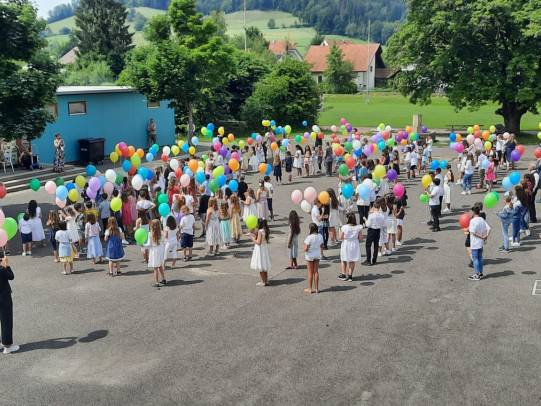 In diesem Jahr fand leider erneut keine Solätte statt. Jedes Schulhaus hat trotzdem eine eigene, kleine Feier zum Schuljahresende durchgeführt. Es wurde getanzt, gesungen und Wünsche in den Himmel geschickt.