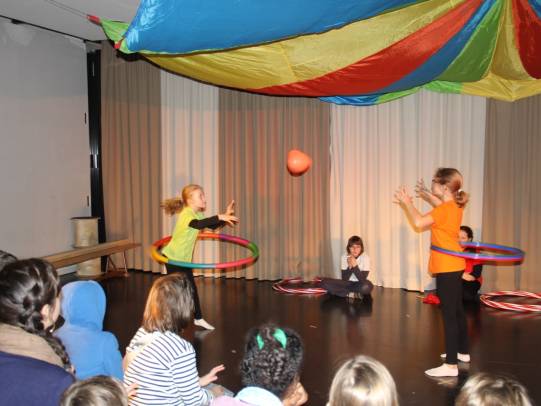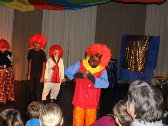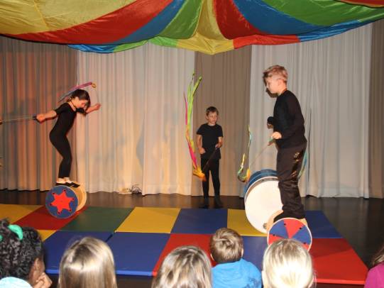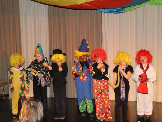 Seit den Herbstferien beschäftigen sich die beiden Unterstufenklassen und ihre Lehrerinnen mit dem Thema Zirkus. Beim Besuch mit einer interessanten Führung im Circus Monti wurden Zirkusluft geschnuppert und Ideen für eigene Nummern gesammelt. Dann wurden die Ideen konkretisiert, ausprobiert und geprobt. In der ersten Woche nach den Winterferien gab es einen Workshop mit Clown Pepe vom Zirkus Balloni.